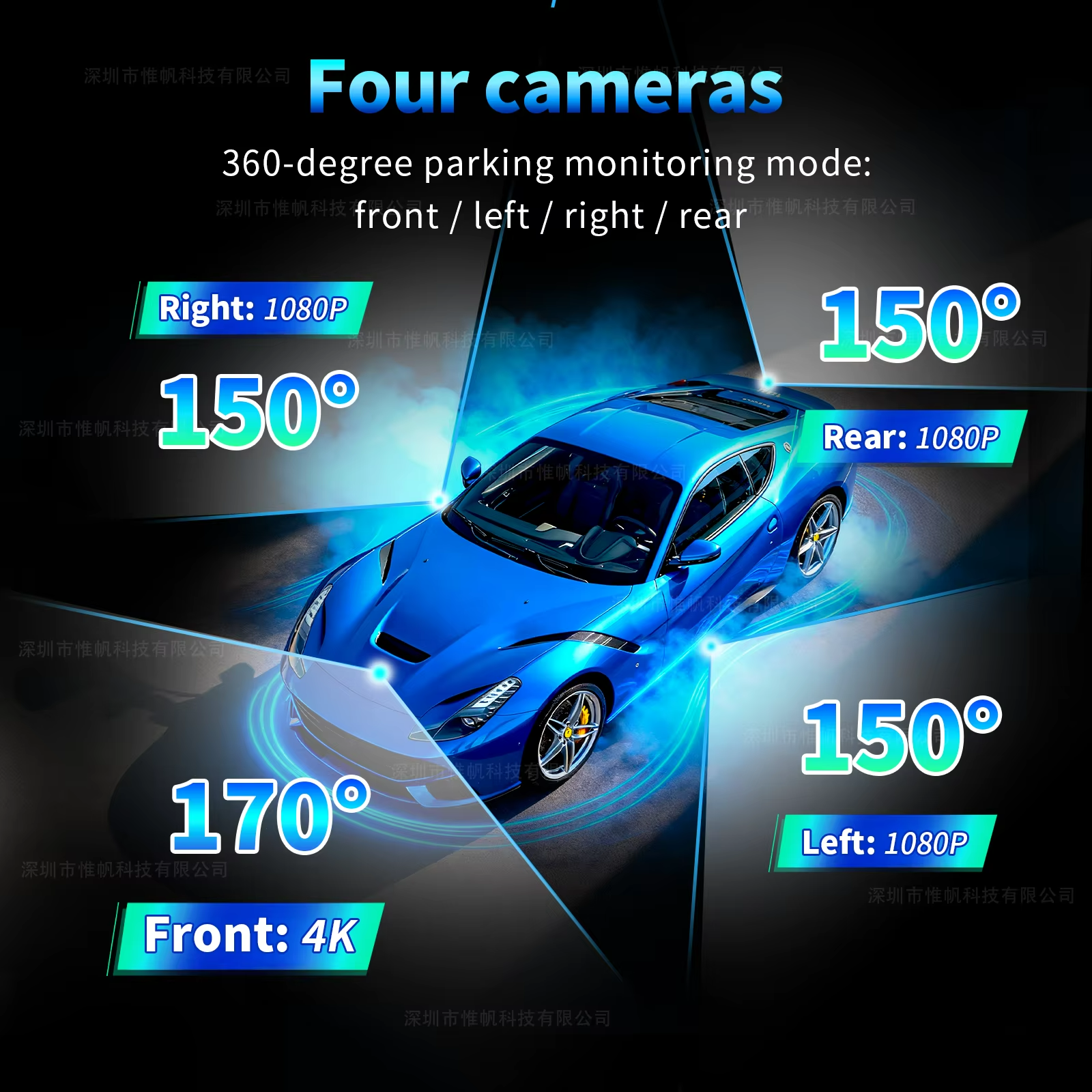 This 4-channel dash cam delivers full vehicle coverage with a 4K front camera and 1080P side and rear cameras. Designed for wide-angle recording and clear video capture, it helps you monitor every direction while driving.