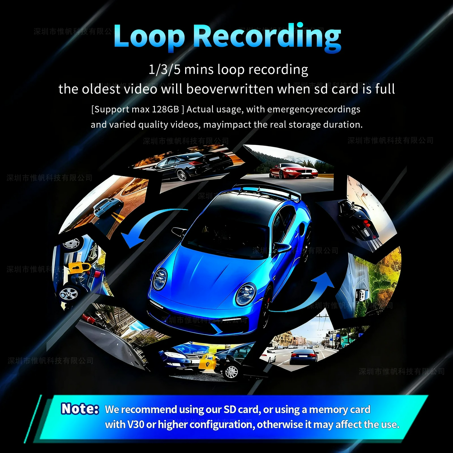 Loop recording automatically overwrites old footage to ensure continuous recording, so you never run out of storage while driving.